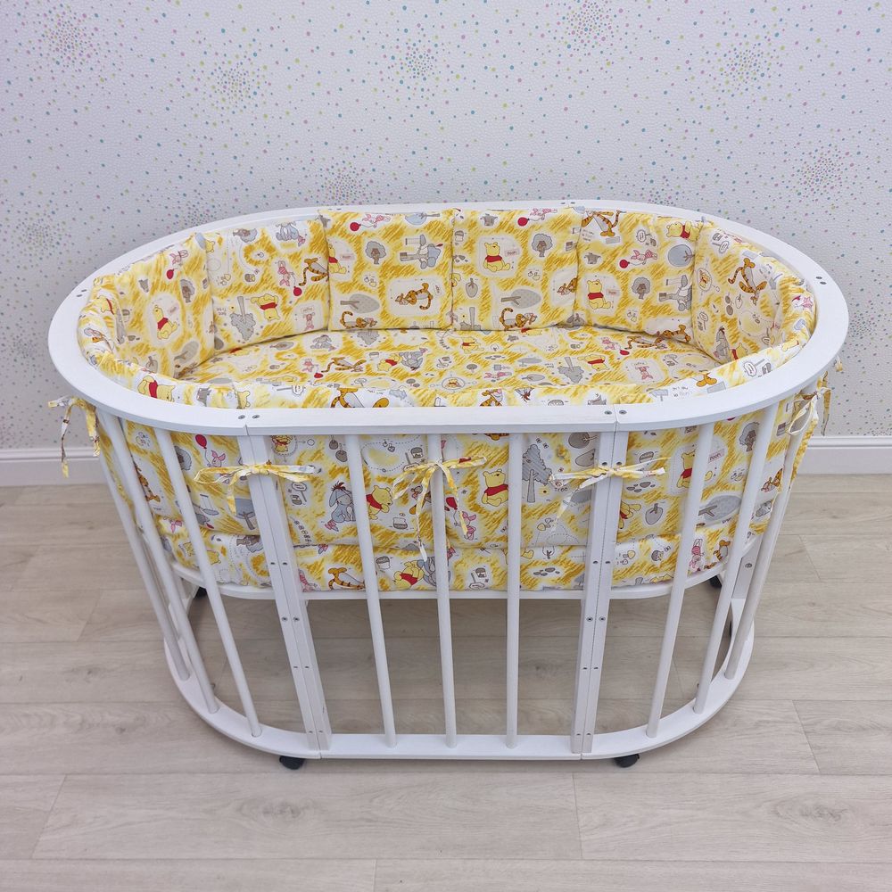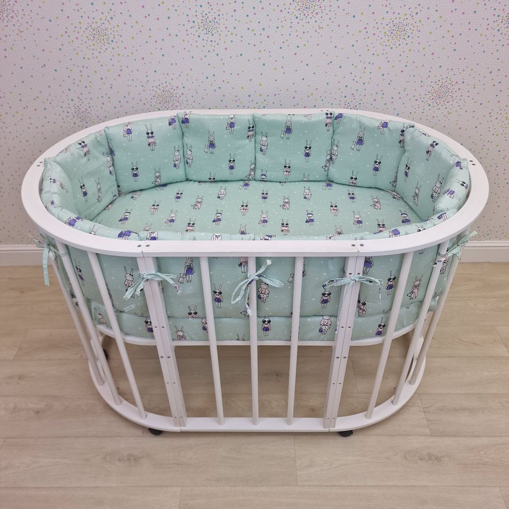 Бортик из 12 подушек по всему периметру кроватки (сатин + синтепон) (№961с) цвета в ассортименте.