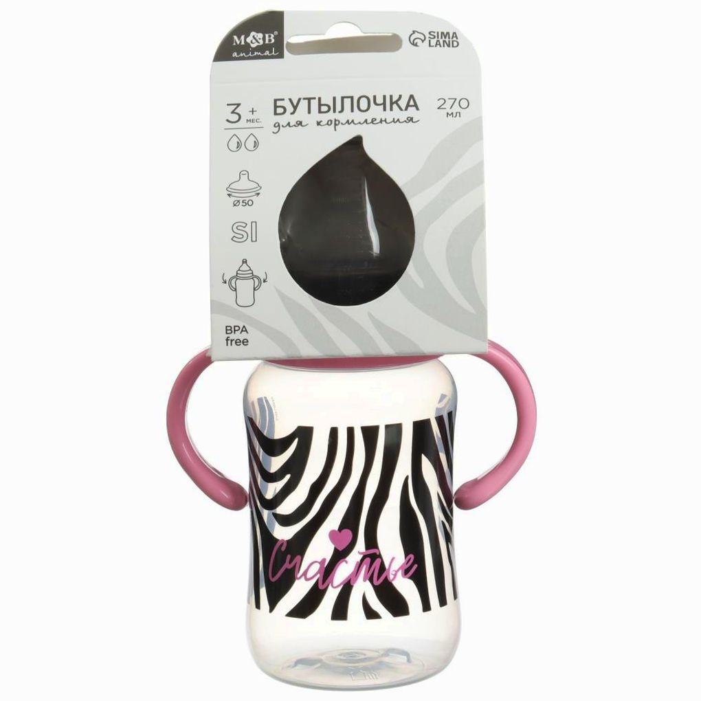 Бутылочка для кормления, широкое горло Animal, 270 мл., с ручками (№10328446).