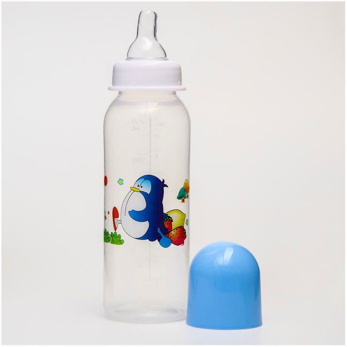 Пластиковую бутылочку удобно давать ребёнку. Лёгкую ёмкость малыш сможет самостоятельно удерживать в ручках. Износостойкий материал не бьётся и прослужит около двух лет. Полипропилен, использующийся в пищевой промышленности, безопасен для здоровья: не выделяет вредных веществ при контакте с жидкостью и стерилизации.