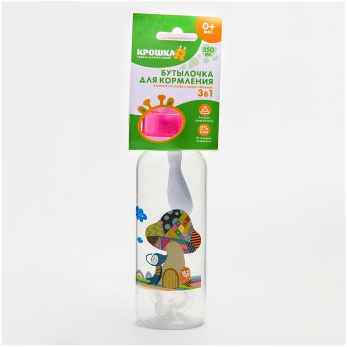 Бутылочка 3 в 1, в комплекте ложка и носик-поильник, 250 мл, от 0 мес., цвета МИКС (№145000).