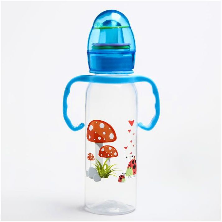 Пластиковую бутылочку удобно давать ребёнку. Лёгкую ёмкость малыш сможет самостоятельно удерживать в ручках. Износостойкий материал не бьётся и прослужит около двух лет. Полипропилен, использующийся в пищевой промышленности, безопасен для здоровья: не выделяет вредных веществ при контакте с жидкостью и стерилизации.