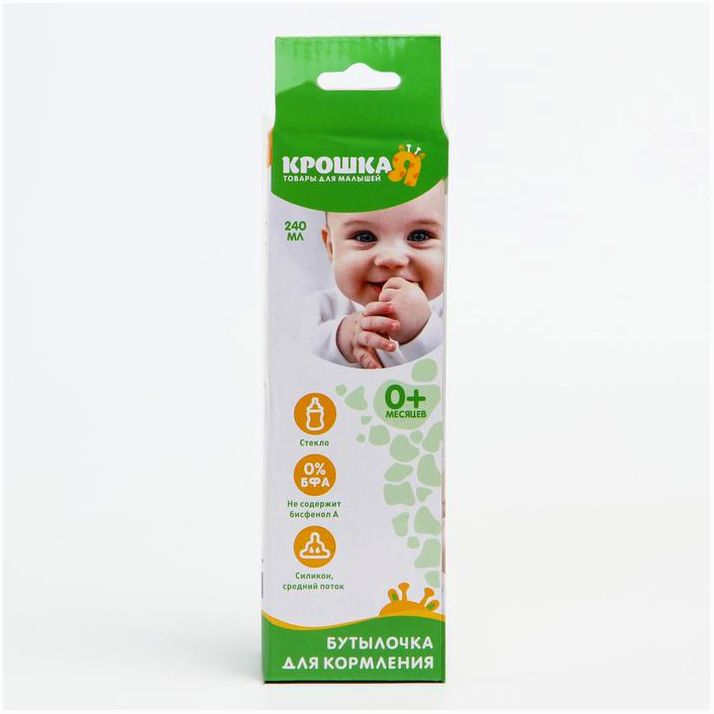 Бутылочка стеклянная, средний поток, с рисунком, 240 мл, от 0 мес., цвета МИКС (№1613541).