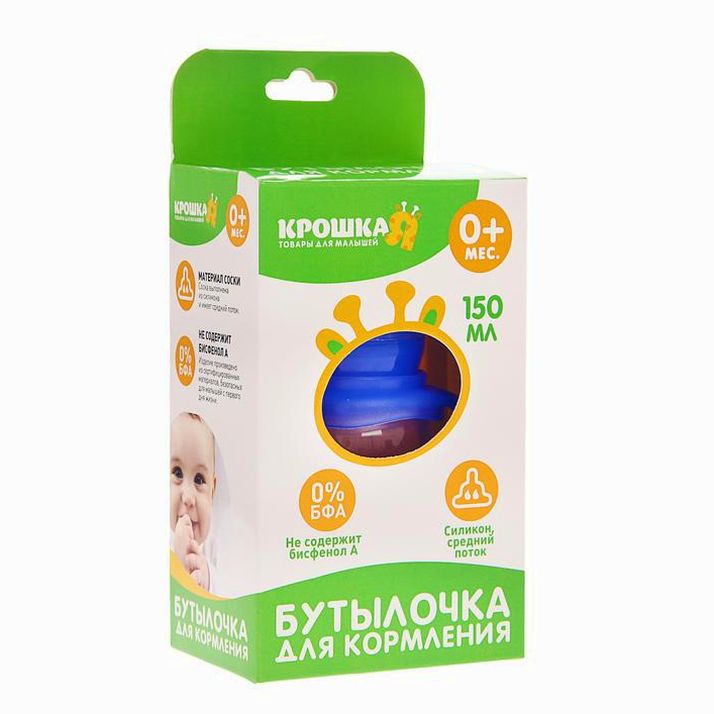 Бутылочка для кормления цветная с ручками, 150 мл, от 0 мес., цвет голубой (№2825263).