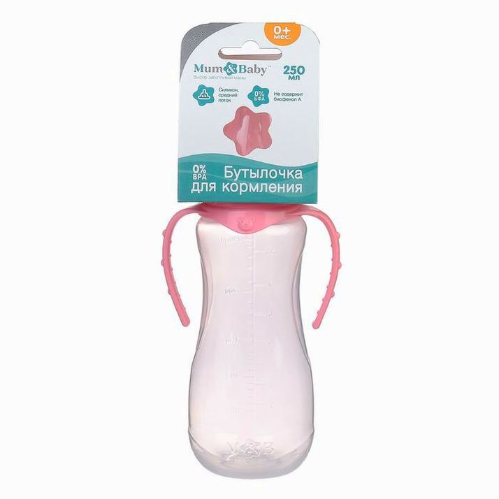 Бутылочка, клас горло, приталенная, с ручками, 250 мл, от 3 мес, цвет розовый МИКС (№2969719).