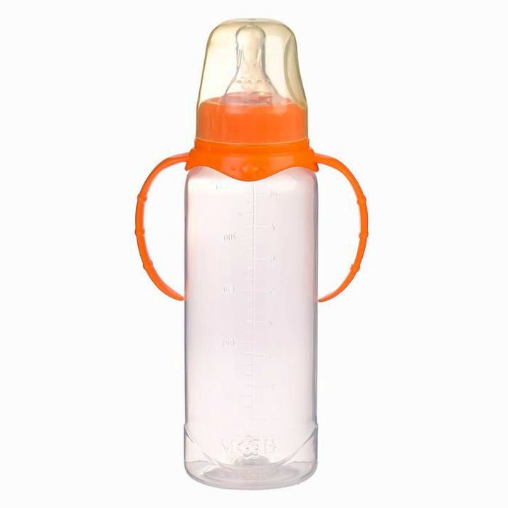 Бутылочка классическая, с ручками, 250 мл, от 0 мес., цвет оранжевый МИКС (№2969743).