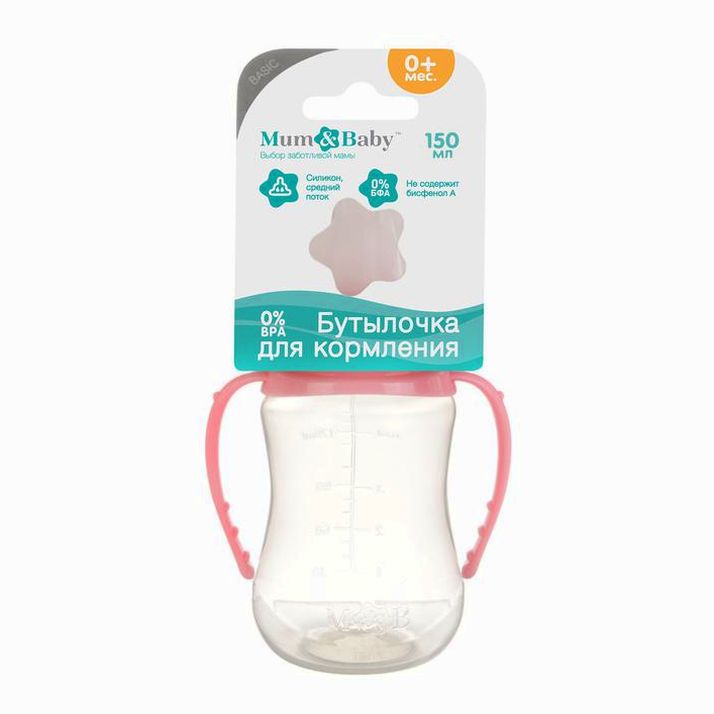 Бутылочка для кормления, классическое горло, приталенная, с ручками, 150 мл, от 0 мес, цвет розовый (№2969759).