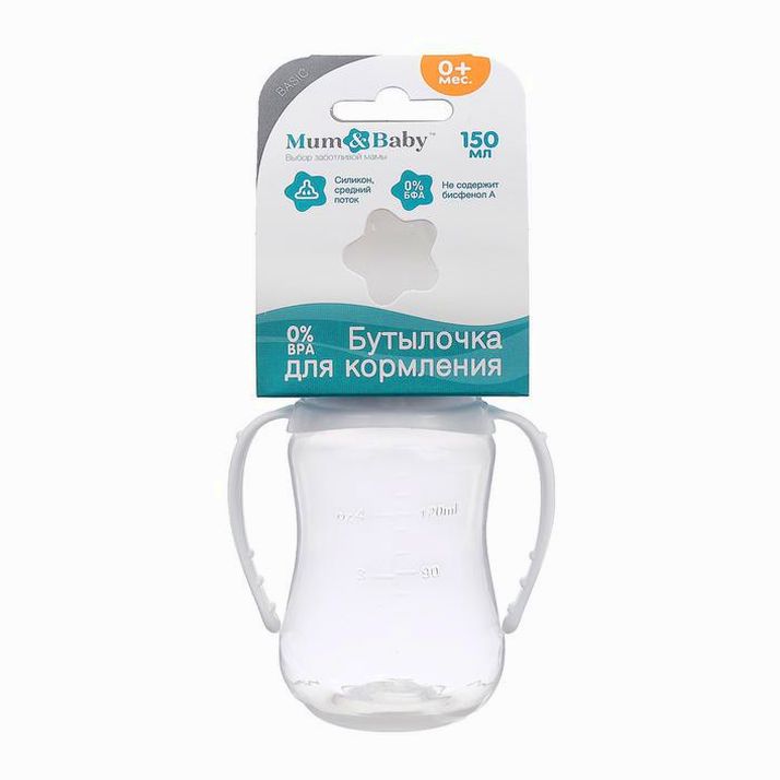 Бутылочка для кормления, классическое горло, приталенная, с ручками, 150 мл., от 0 мес., цвет белый (№2969768).