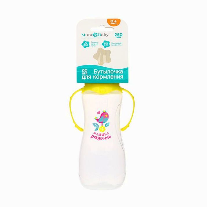 Бутылочка «Радость» , с ручками, 250 мл, от 0 мес., цвет жёлтый (№2969815).