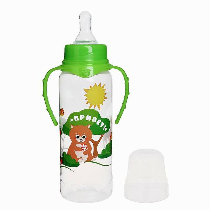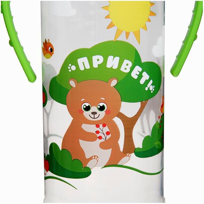 Бутылочка «Лесная сказка», классическое горло, с ручками, 250 мл., от 0 мес., цвет зелёный (№2969827).