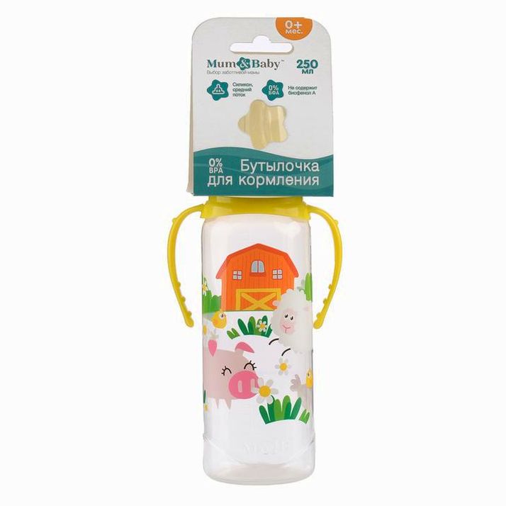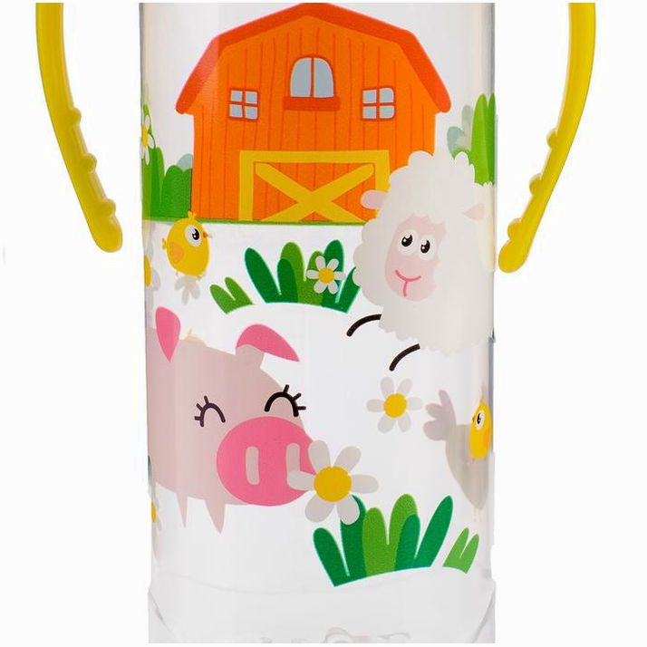 Бутылочка «Весёлая ферма», классическое горло, с ручками, 250 мл., от 0 мес, цвет жёлтый (№2969831).