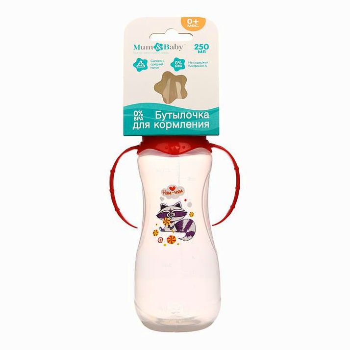 Бутылочка «Енотик Тобби», клас горло, приталенная форма, с ручками, 250 мл, от 0 мес, цвет красный (№2969832).
