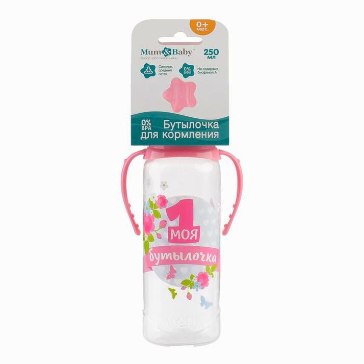 Бутылочка «Моя первая бутылочка», классическое горло, с ручками, 250 мл., от 0 мес., цвет розовый (№2969841).