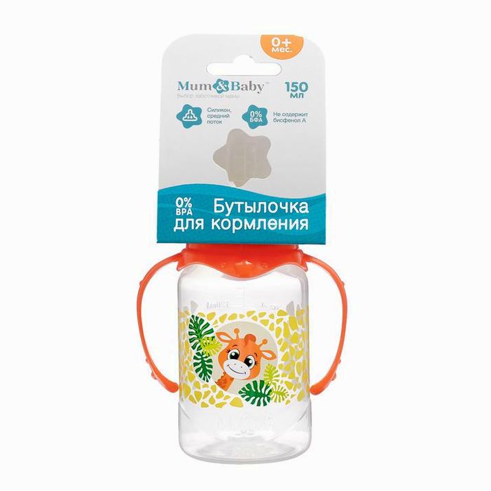 Бутылочка «Жирафик Лило» классическая, с ручками, 150 мл, от 0 мес., цвет оранжевый (№2969876).