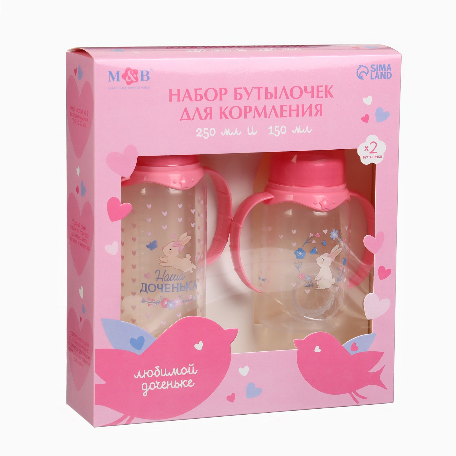 Набор бутылочек для кормления «Любимая доченька» 150 и 250 мл, прямые, цвет розовый (№3654424).