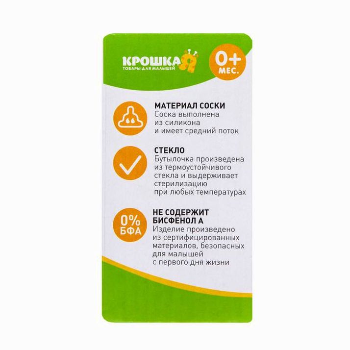 Бутылочка имеет мягкую и гибкую соску, которая не слипнется и будет удобно располагаться у малыша во рту.