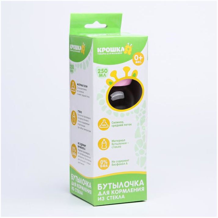 Бутылочка имеет мягкую и гибкую соску, которая не слипнется и будет удобно располагаться у малыша во рту.