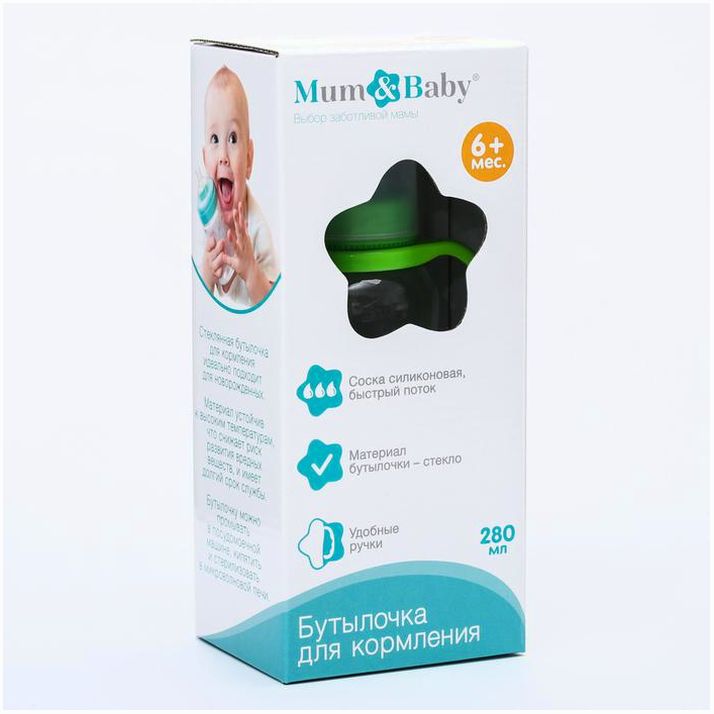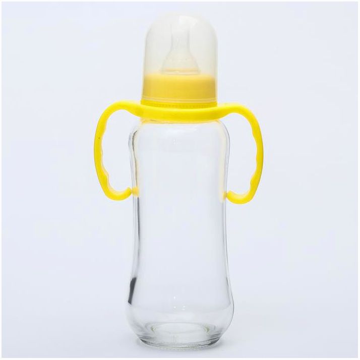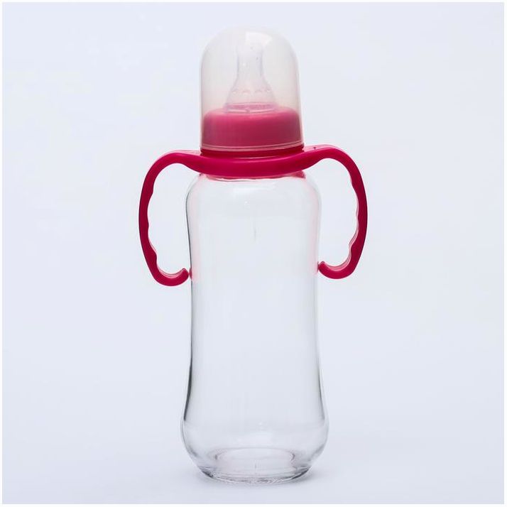 Бутылочка для кормления, стекло, 280 мл., с ручками, цвет МИКС (№4627673).