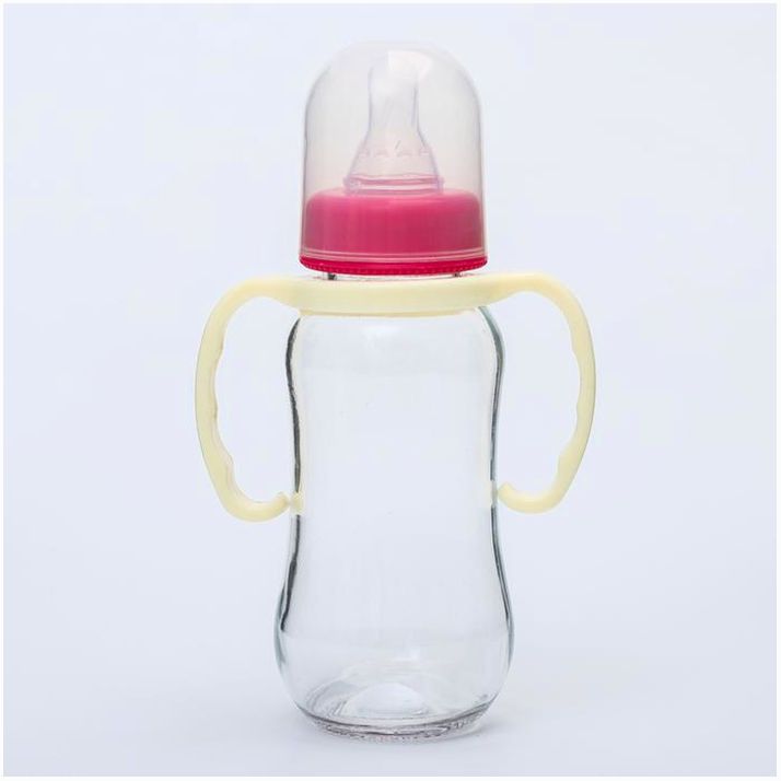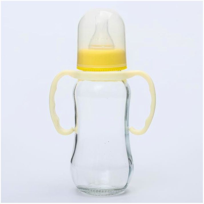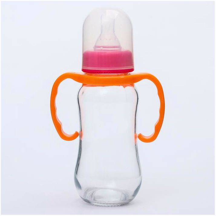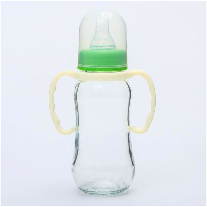 Бутылочка для кормления, стекло, 200 мл., с ручками, цвет МИКС (№4627675).