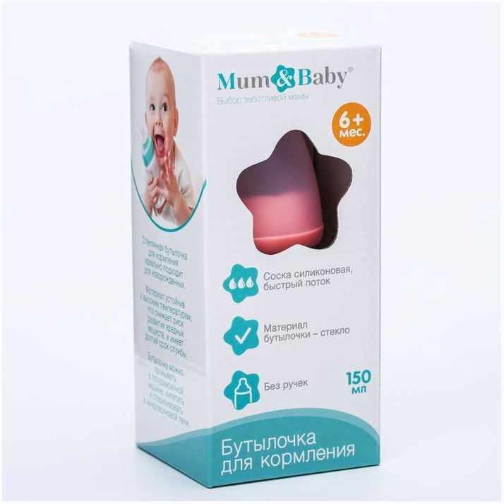Бутылочка для кормления, стекло, 150 мл., широкое горло, цвет МИКС (№4627678).