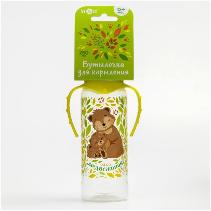 Бутылочка «Мишки: мамы и малыши», классическое горло, 250 мл., от 0 мес, цилиндр, с ручками (№4644215).