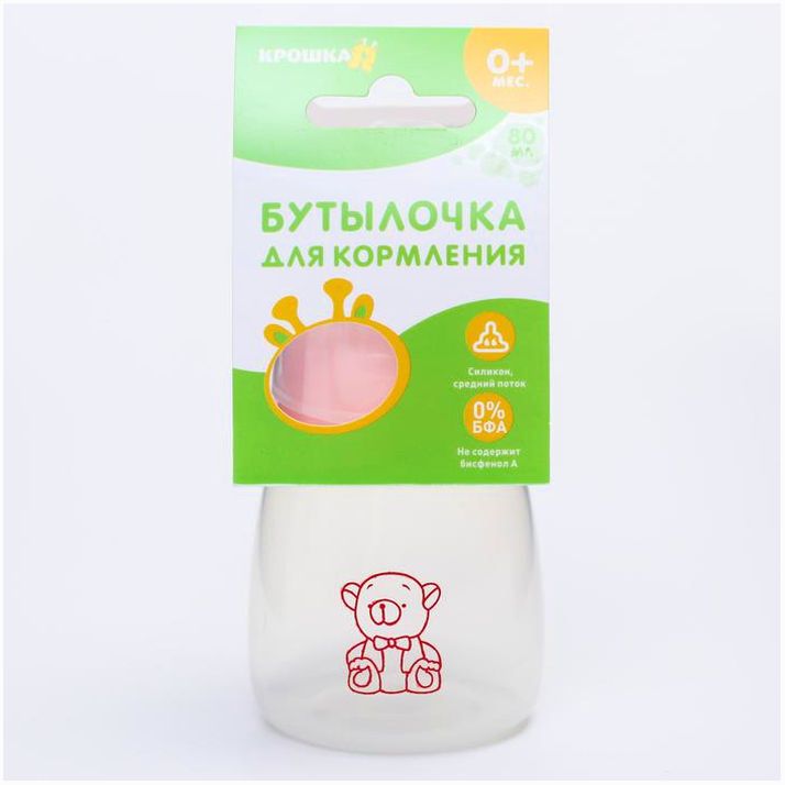 Бутылочка «Мишка малыш», классическое горло, 80 мл., от 0 мес., цвет розовый (№4729890).