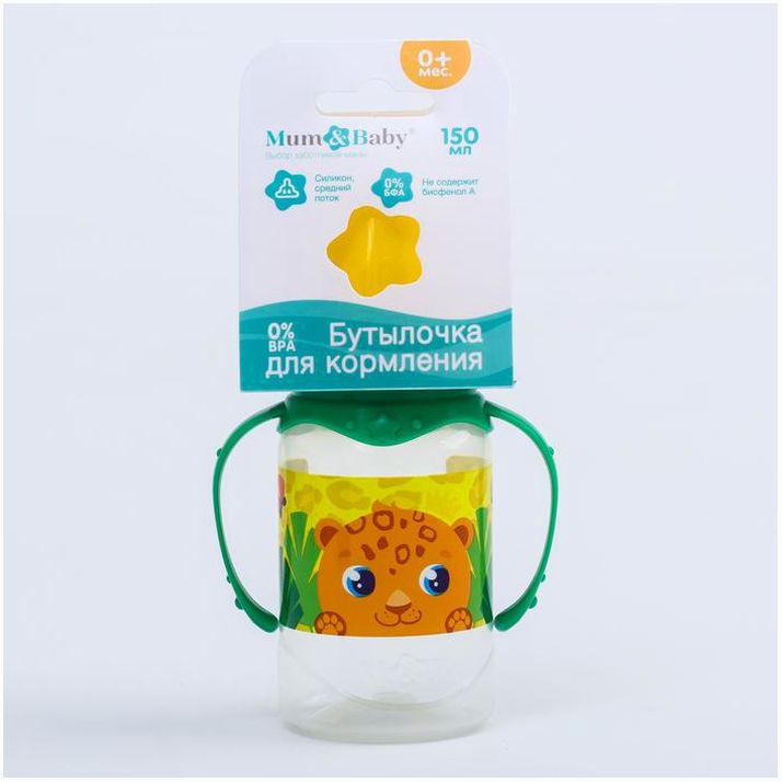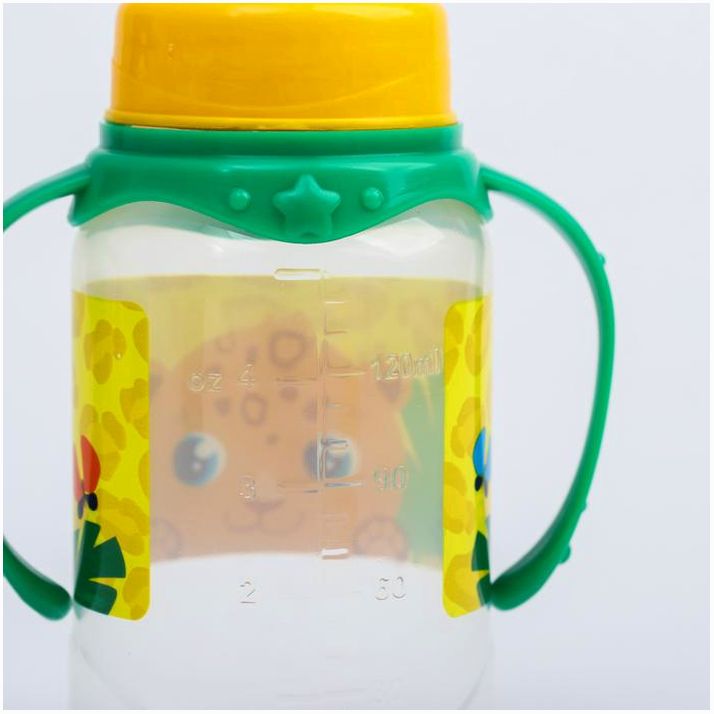 Бутылочка «ТРЕНД. Леопард», классическое горло, 150 мл., от 3 мес., цилиндр, с ручками, цвет желтый (№4882554).