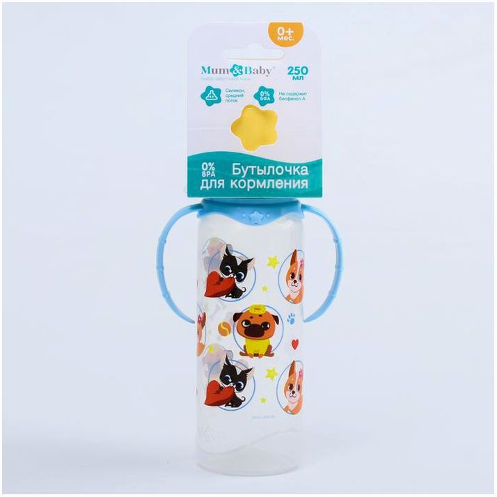 Бутылочка «ТРЕНД. Песики», классическое горло, 250 мл., от 3 мес., цилиндр, с ручками, цвет голубой (№4882555).