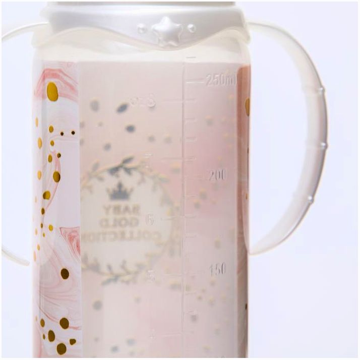 Бутылочка «Золотая коллекция: розовый мрамор», клас горло, 250 мл, от 3 мес, цилиндр, с ручками (№5399840).