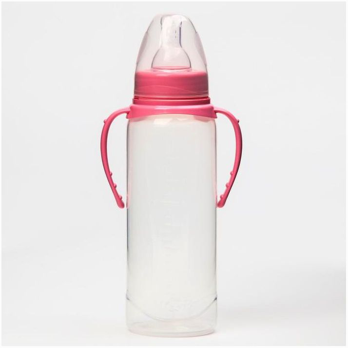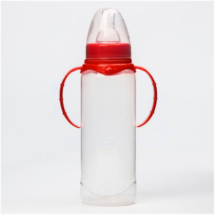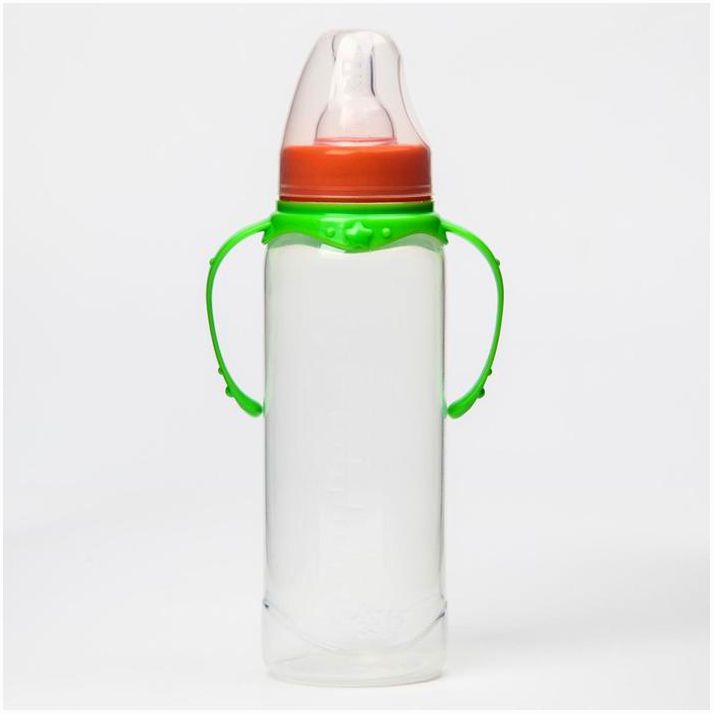 Бутылочка для кормления, классическое горло, 250 мл., от 3 мес., цилиндр, с ручками, цвет МИКС (№7012038).