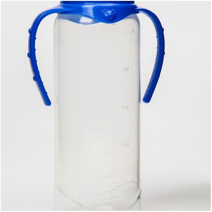 Бутылочка из полипропилена мало весит, поэтому её удобно давать ребёнку. Износостойкий материал прослужит около 2 лет.