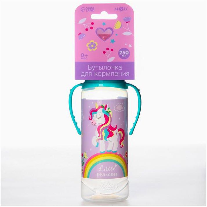 Бутылочка для кормления «Единорог», классическое горло, 250 мл., от 3 мес., цилиндр, с ручками (№7623815).