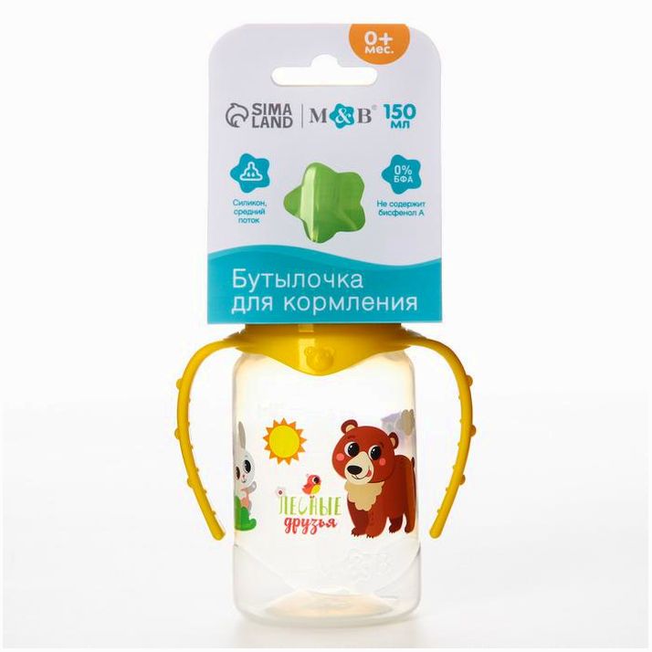 Бутылочка для кормления «Лесные друзья», классическое горло, 150 мл., от 0 мес., цилиндр, с ручками (№7987841).