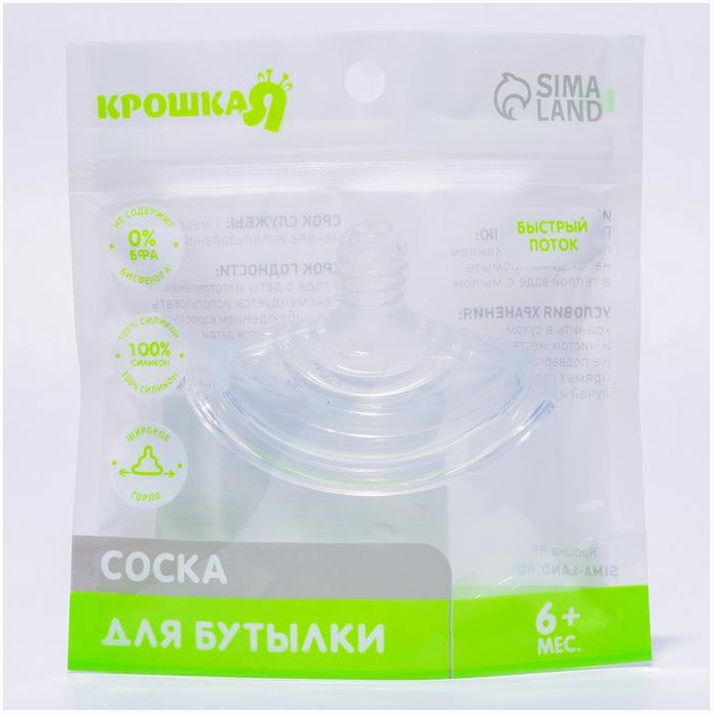 Соска силик, антиколиковая на бутылочку, +6мес., широкое горло, ?60мм, для густой пищи (№7127814).