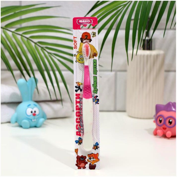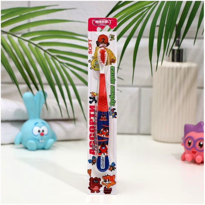 Детская зубная щётка «Ассорти»,двухкомпонентная ручка, мягкая щетина (№5498038).