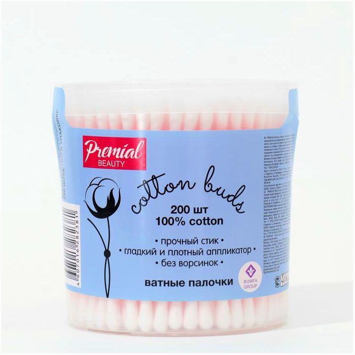 Ватные палочки Premial Classic, стакан, 200 шт. (№794948).