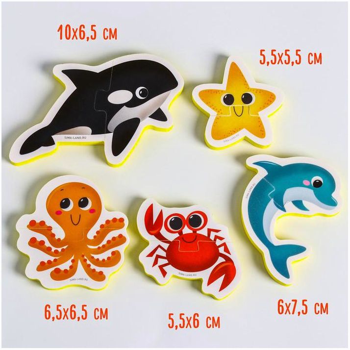 Мягкий пазл для малышей «Морские животные», 5 пазлов, Крошка Я (№5302618).