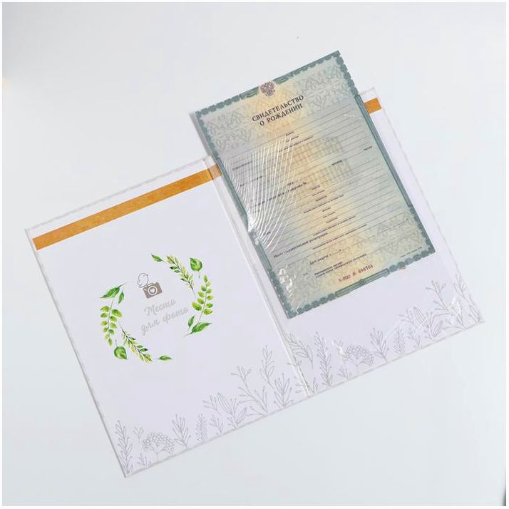 Обложка для свидетельства о рождении А4— полезный аксессуар, позволяющий хранить первый важный документ ребёнка в целости и сохранности. Материал обложки выполнен из плотного переплётного картона 1,25 мм, приятен на ощупь. Внутри — плотный файл размером А4. В такой обложке документ сохранится и не помнётся даже при активном использовании. Папка для свидетельства о рождении станет приятным и нужным подарком молодым родителям.