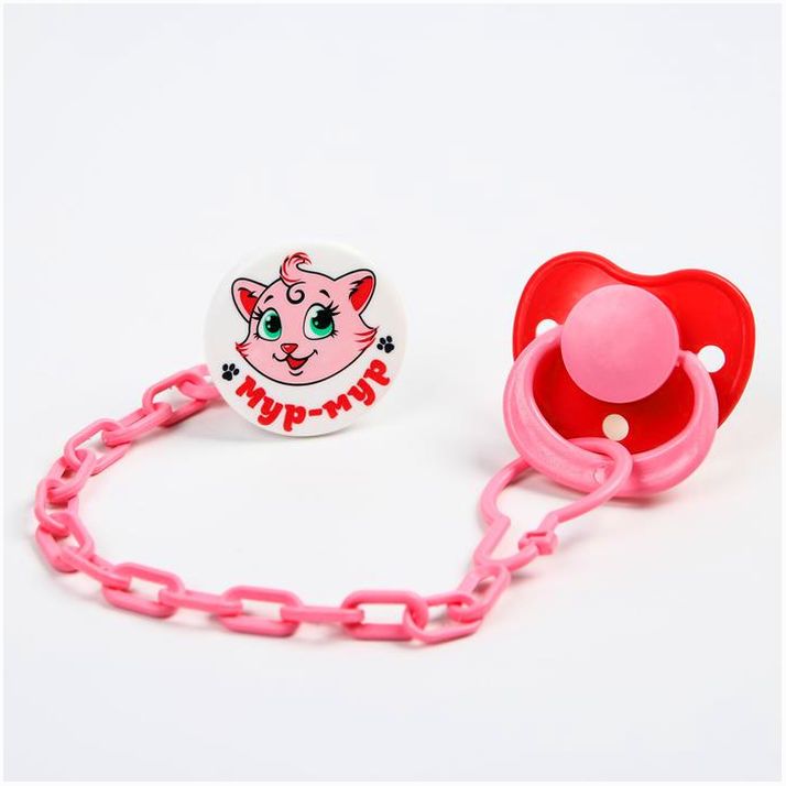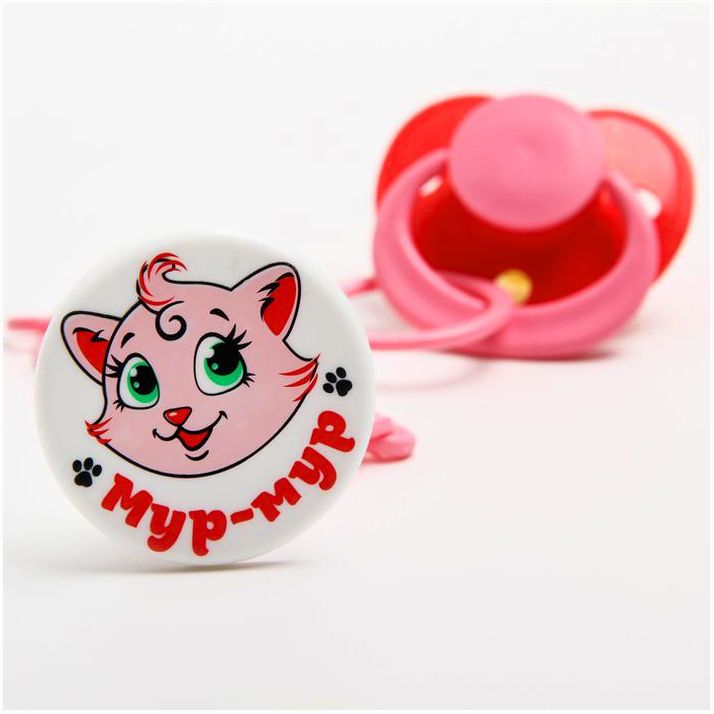 Соска-пустышка ортодонтическая, латекс, от 0 мес., с держателем, «Мур-мур», цвет розовый (№1476697).