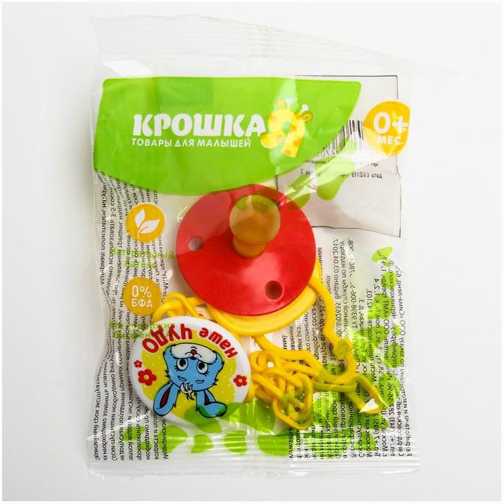 Товар изготовлен из безопасных материалов — латекса и пластика. Не содержит бисфенол А. Можно использовать с первых дней жизни ребёнка.