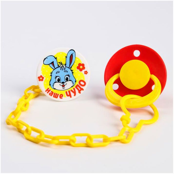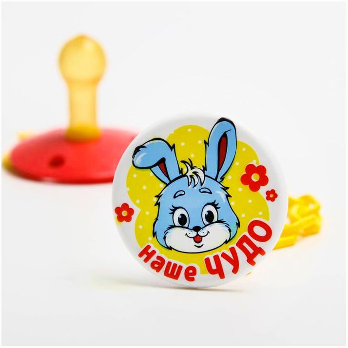 Соска-пустышка латексная классическая с кольцом «Наше чудо», на цепочке с прищепкой, от 0 мес. (№1476705).
