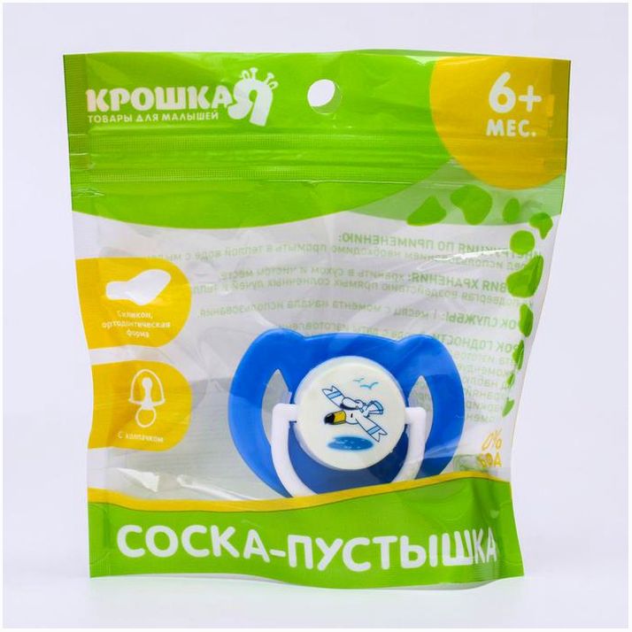 Соска-пустышка ортодонтическая, силикон, от 6 мес., с колпачком, «Самолет», цвет голубой (№4770928).