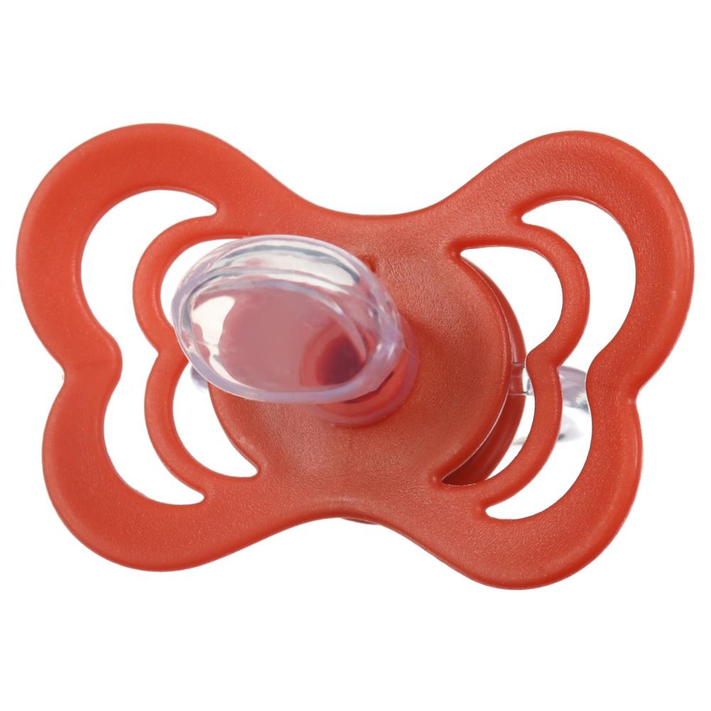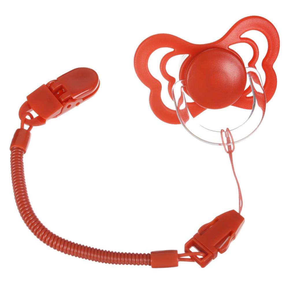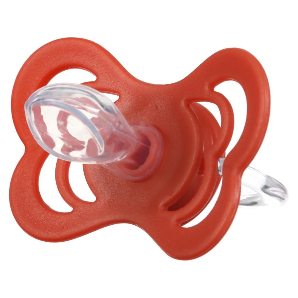 Соска - пустышка ортодонтическая, силикон, +6 мес., с держателем, цвет вишневый (№9887468).