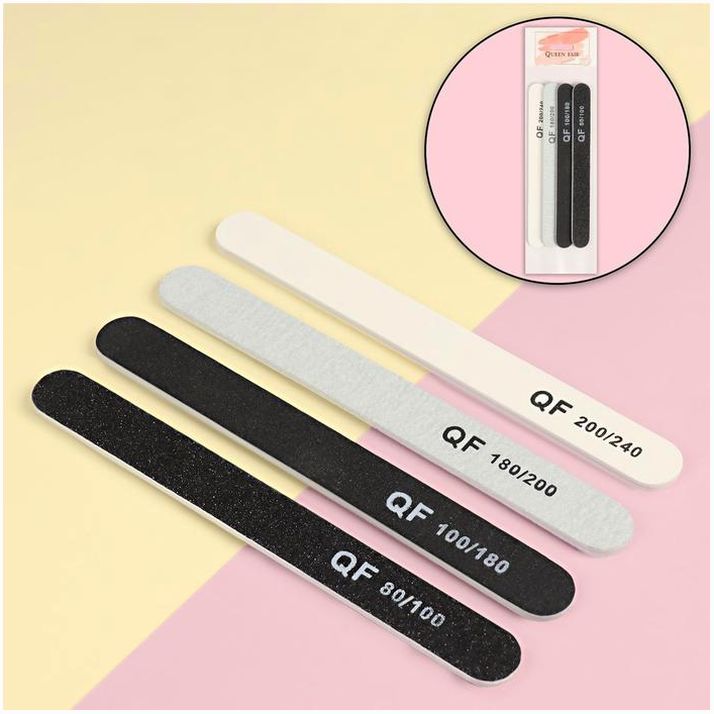 Пилки-наждаки, абразивность 80/100, 100/180, 180/200, 200/240, 18 см, 4 шт, цвет чёрный/серый/белый (№4230714).