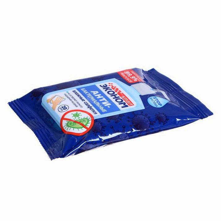 Влажные салфетки "Эконом" smart, антибактериальные, с содержанием изопропилового спирта, 20 шт (№5059645).