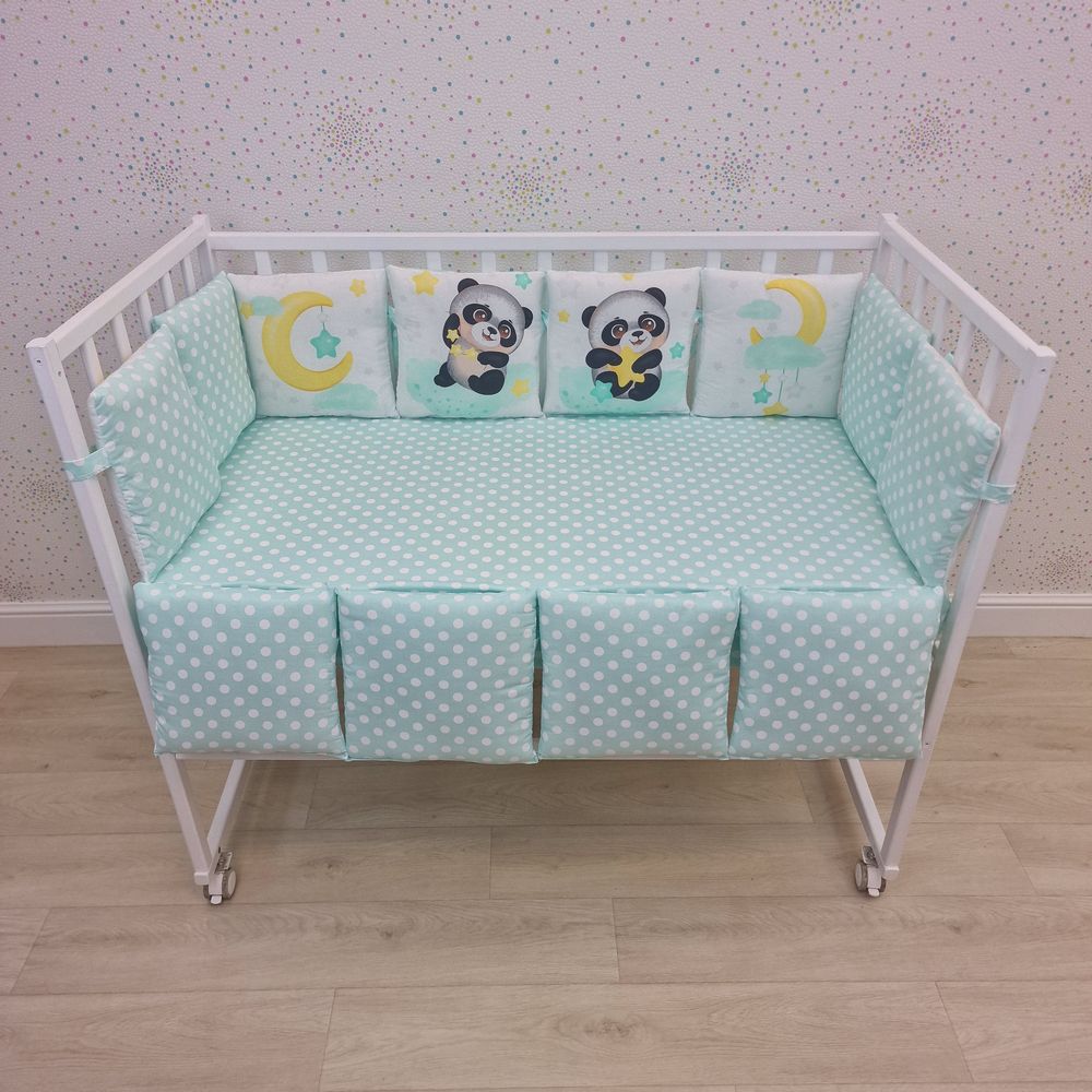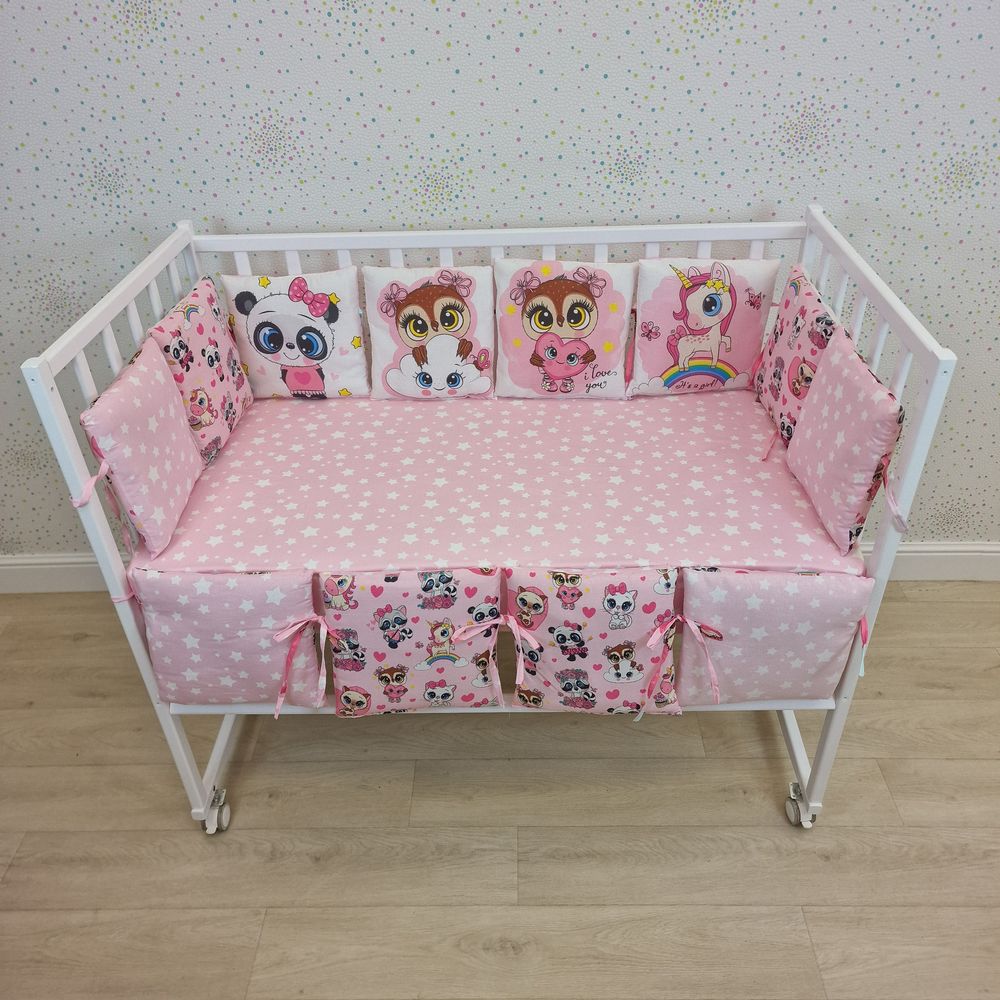 Бортик "купон" из 4+8 подушек по всему периметру кроватки (бязь/перкаль + синтепон) (№К109_4а8) цвета в ассортименте.