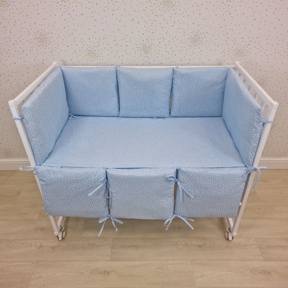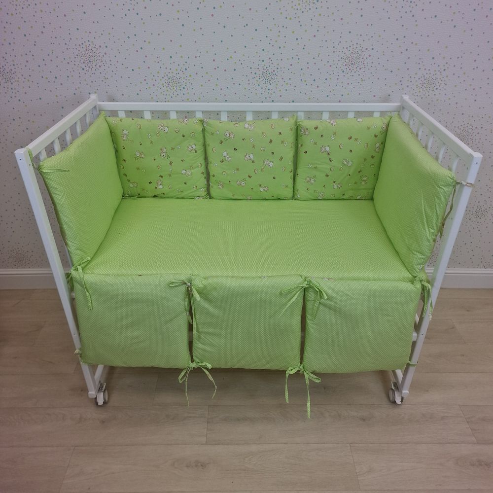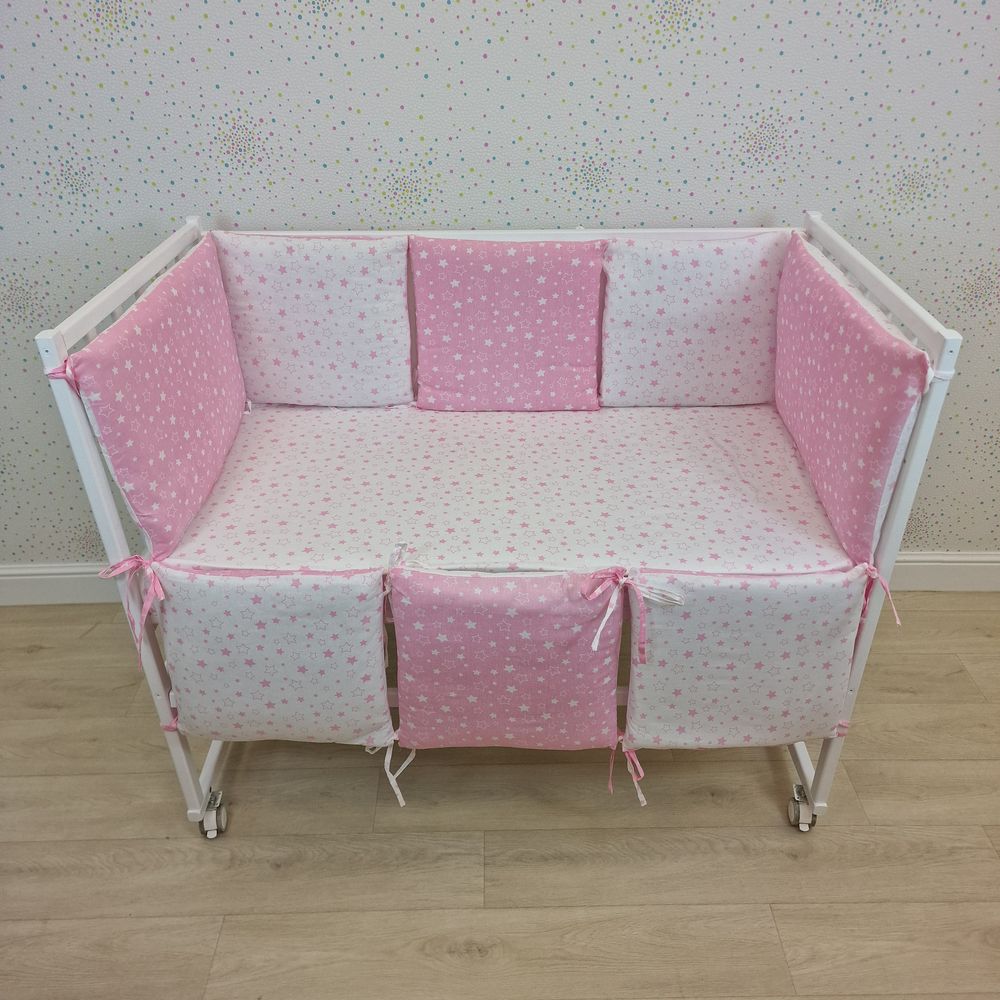 Бортик из 8 (6кв+2пр) подушек по всему периметру кроватки (бязь + синтепон) (№949) цвета в ассортименте.