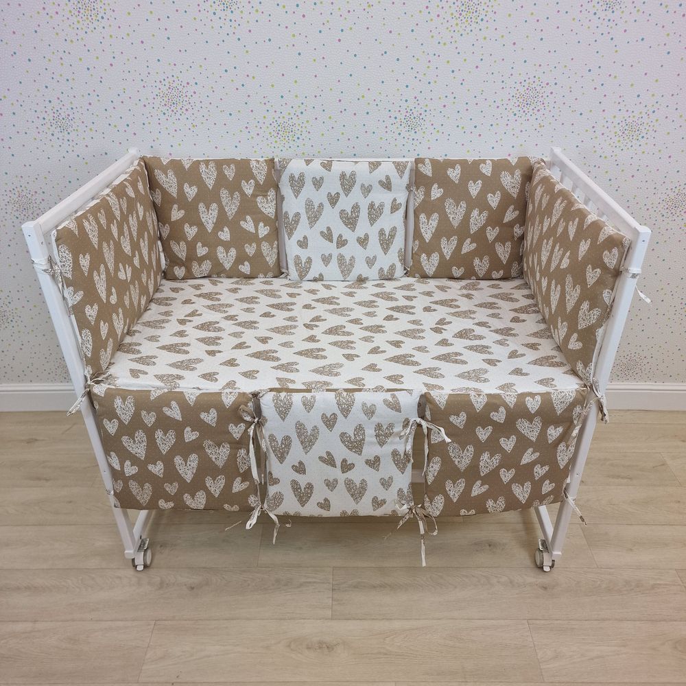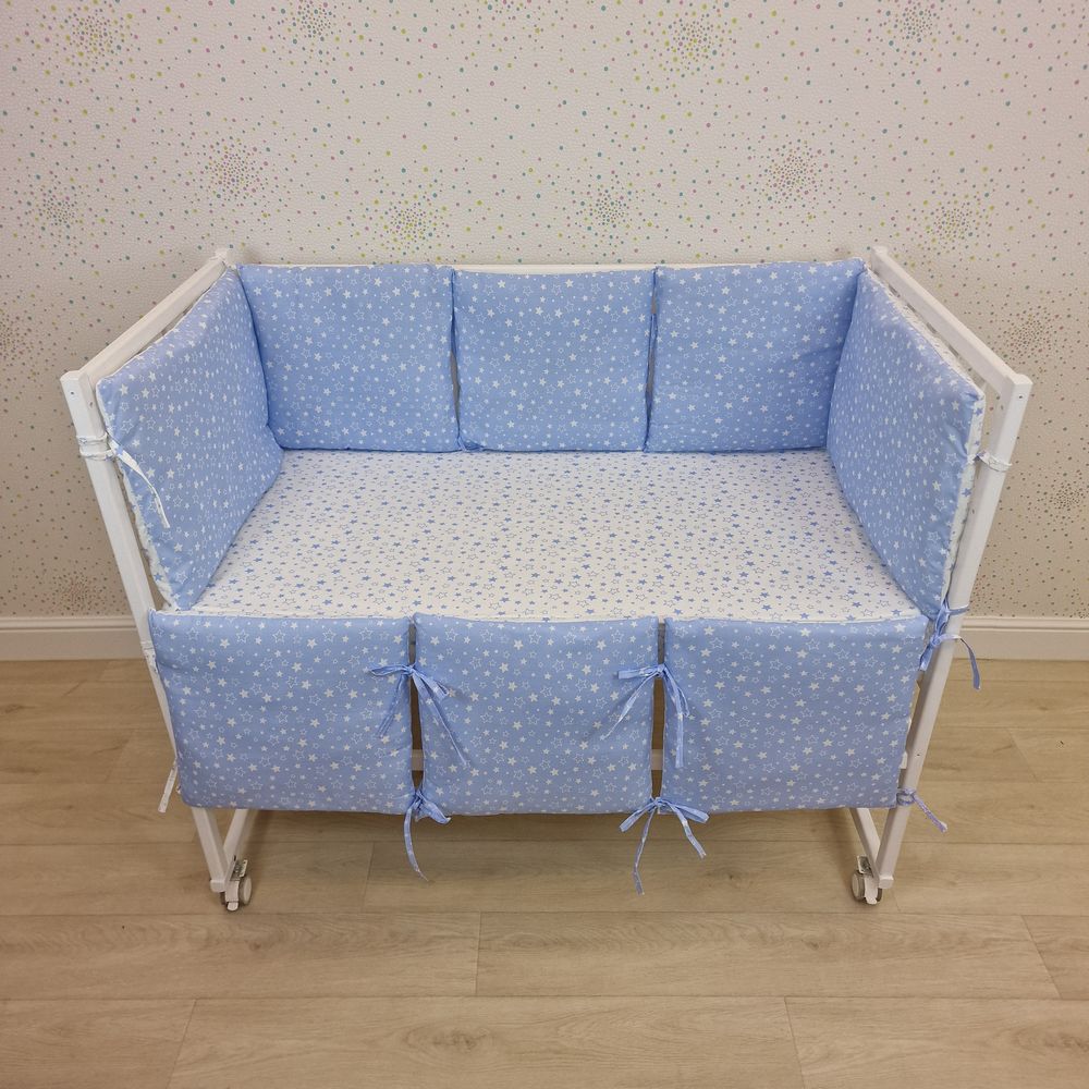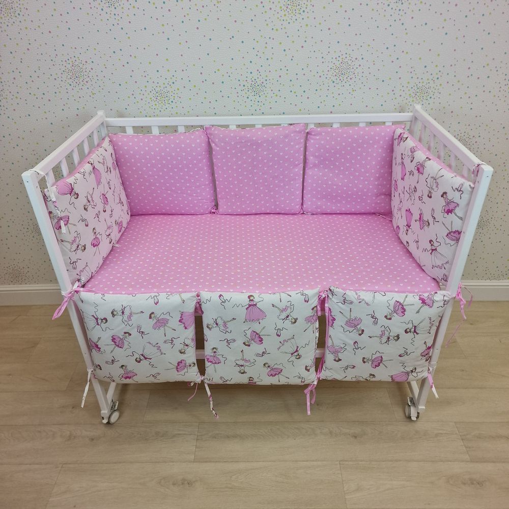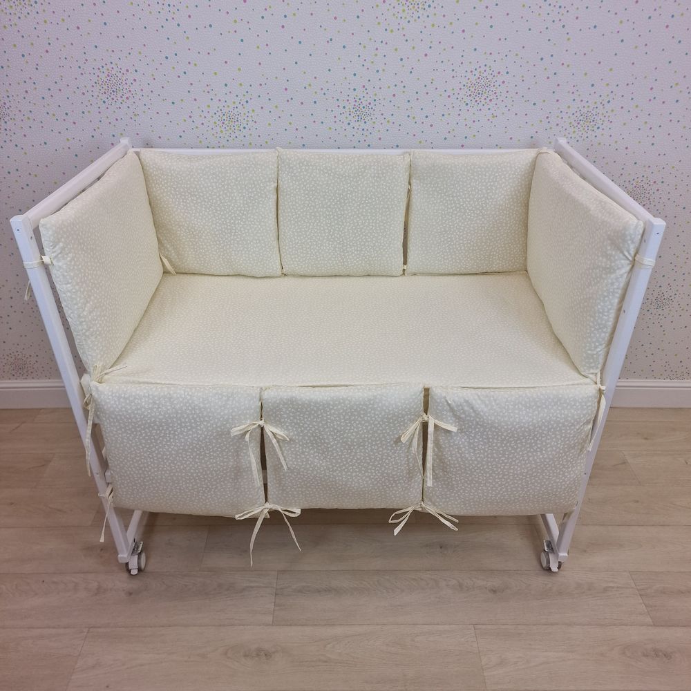 Бортик из 8 (6кв+2пр) подушек по всему периметру кроватки (бязь + синтепон) (№949) цвета в ассортименте.