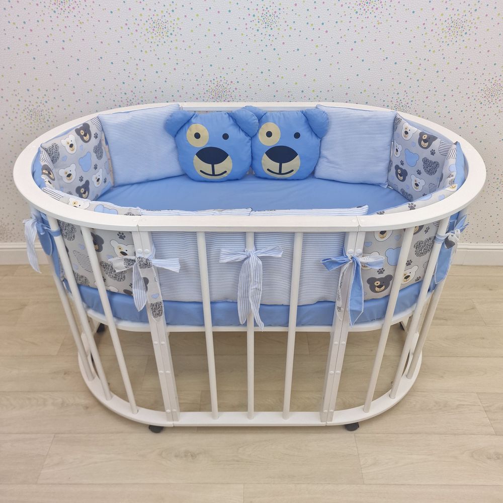 Бортик - 2 мишки + 10 подушек по всему периметру кроватки (бязь + синтепух ш/синтепон) (№994_06) цвета в ассортименте.