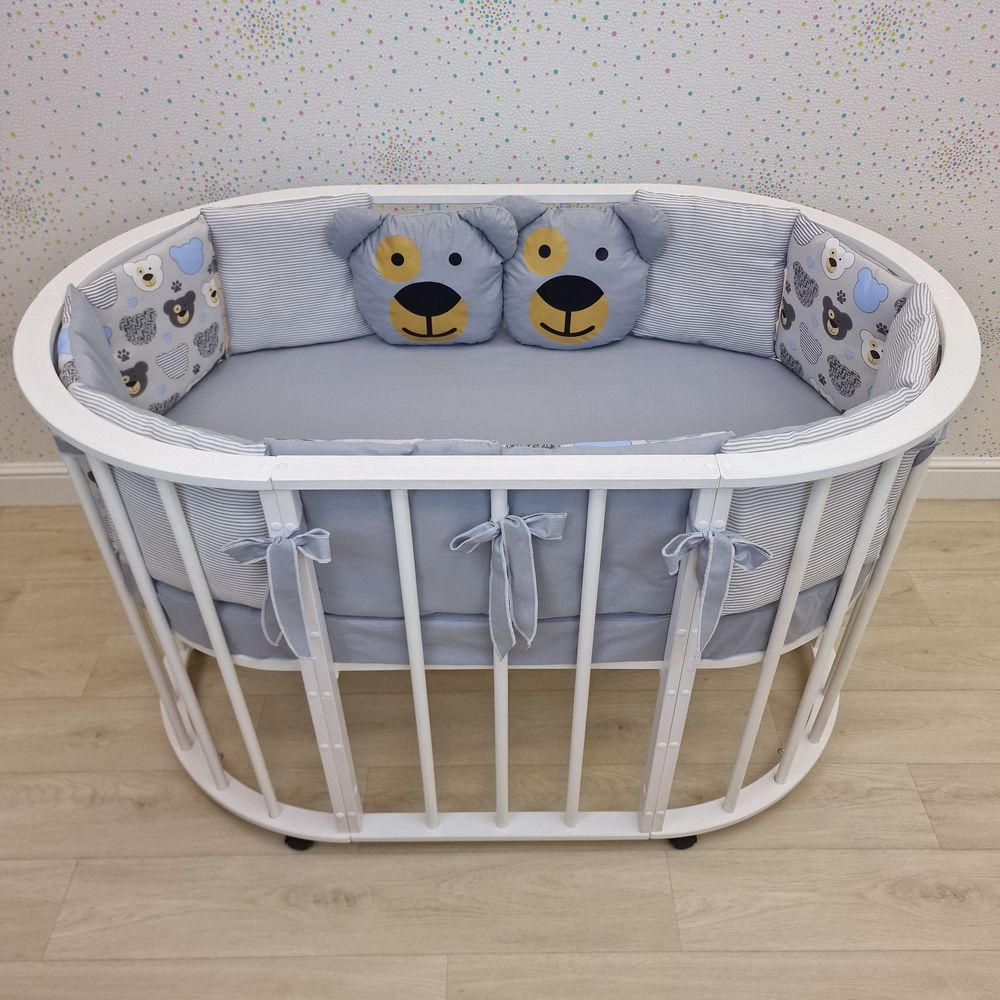 Бортик - 2 мишки + 10 подушек по всему периметру кроватки (бязь + синтепух ш/синтепон) (№994_11) цвета в ассортименте.