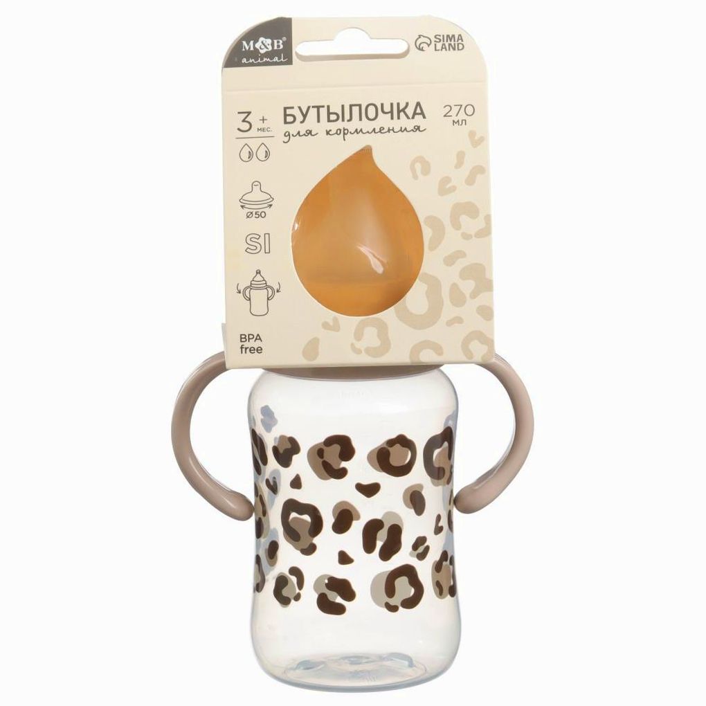 Бутылочка для кормления, широкое горло Animal, 270 мл., с ручками (№10328444).